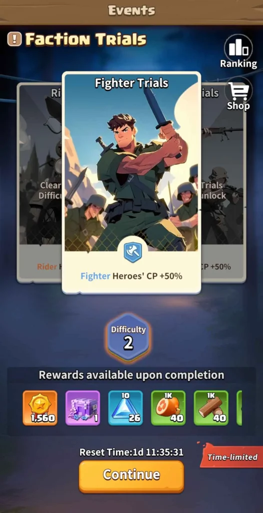 “Faction Trials” is a special challenge event. In this event, you need to complete trials with different levels of difficulty to earn rewards. The event refreshes on certain days. This means you must finish all the trials before your progress resets. Make sure to complete them on time to get your rewards.