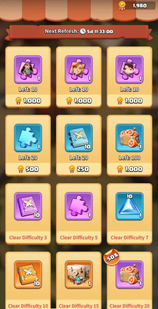 When you finish challenges in this event, you will earn rewards and event “Medals.” These medals can be used to buy various items in the event shop. However, you also need to complete certain difficulty levels before you can unlock some items in the shop.